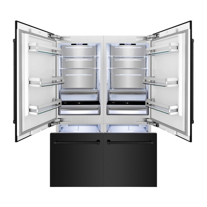 ZLINE 60 in. 32.2 cu. ft. French Door Built-In Bottom Freezer Refrigerator with Water Dispensers and Ice Makers in Black Stainless Steel (RBIV-BS-60) front. Next to panels and handles.