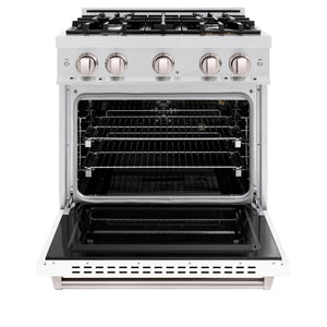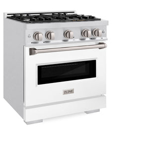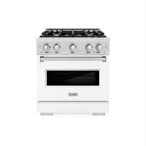 ZLINE 30 in. 4.2 cu. ft. Classic Gas Range with 4 Burner Cooktop and Convection Gas Oven in Satin Stainless Steel with White Matte Door (CGRS-WM-30)