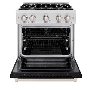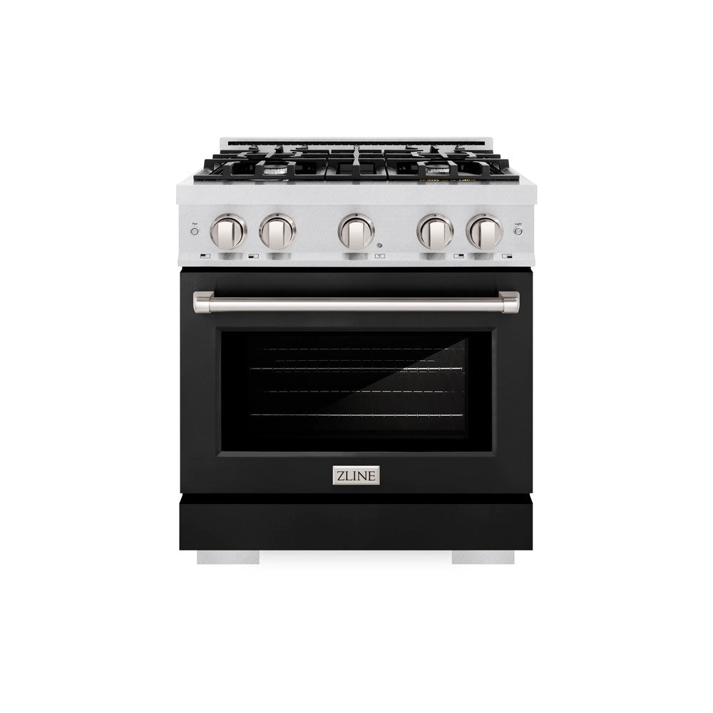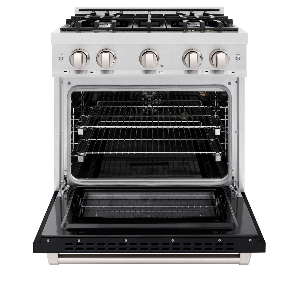 ZLINE 30 in. 4.2 cu. ft. Select Gas Range with 4 Burner Cooktop and Convection Gas Oven in Satin Stainless Steel with Black Matte Door (HGRS-BLM-30)