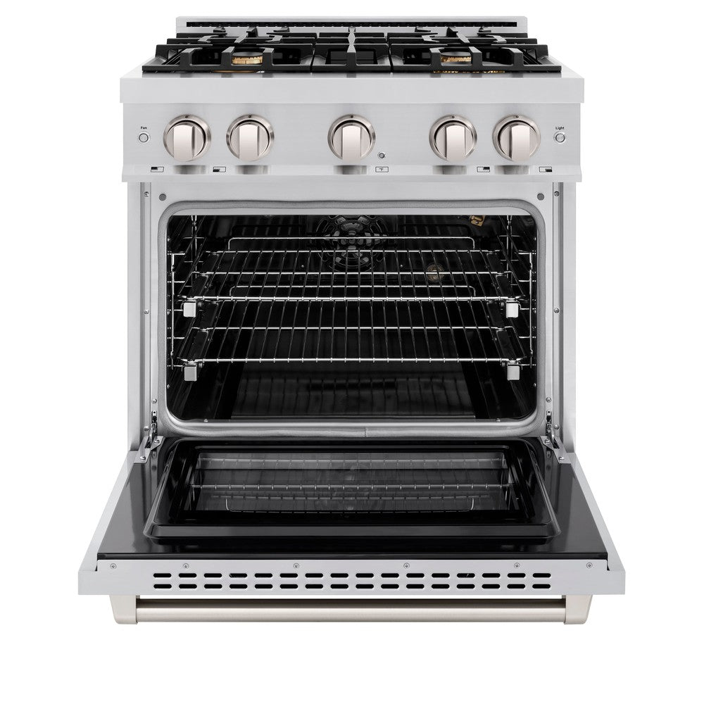 ZLINE 30 in. 4.2 cu. ft. Select Gas Range with Convection Gas Oven in Stainless Steel with 4 Brass Burners (HGR-BR-30)