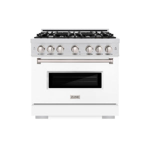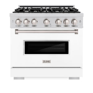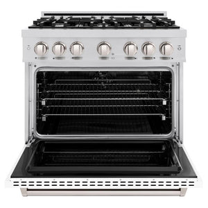 ZLINE 36 in. 5.2 cu. ft. Classic Dual Fuel Range with 6 Burner Gas Cooktop and Electric Convection Oven in Stainless Steel with White Matte Door (CDR-WM-36)
