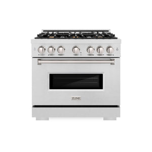 ZLINE 36 in. 5.2 cu. ft. Classic Gas Range with Convection Gas Oven in Satin Stainless Steel with 6 Brass Burners (CGRS-BR-36)