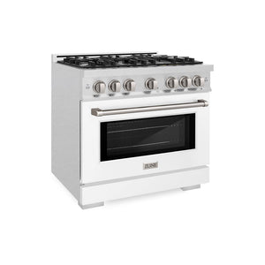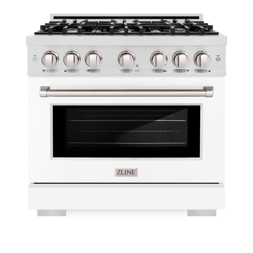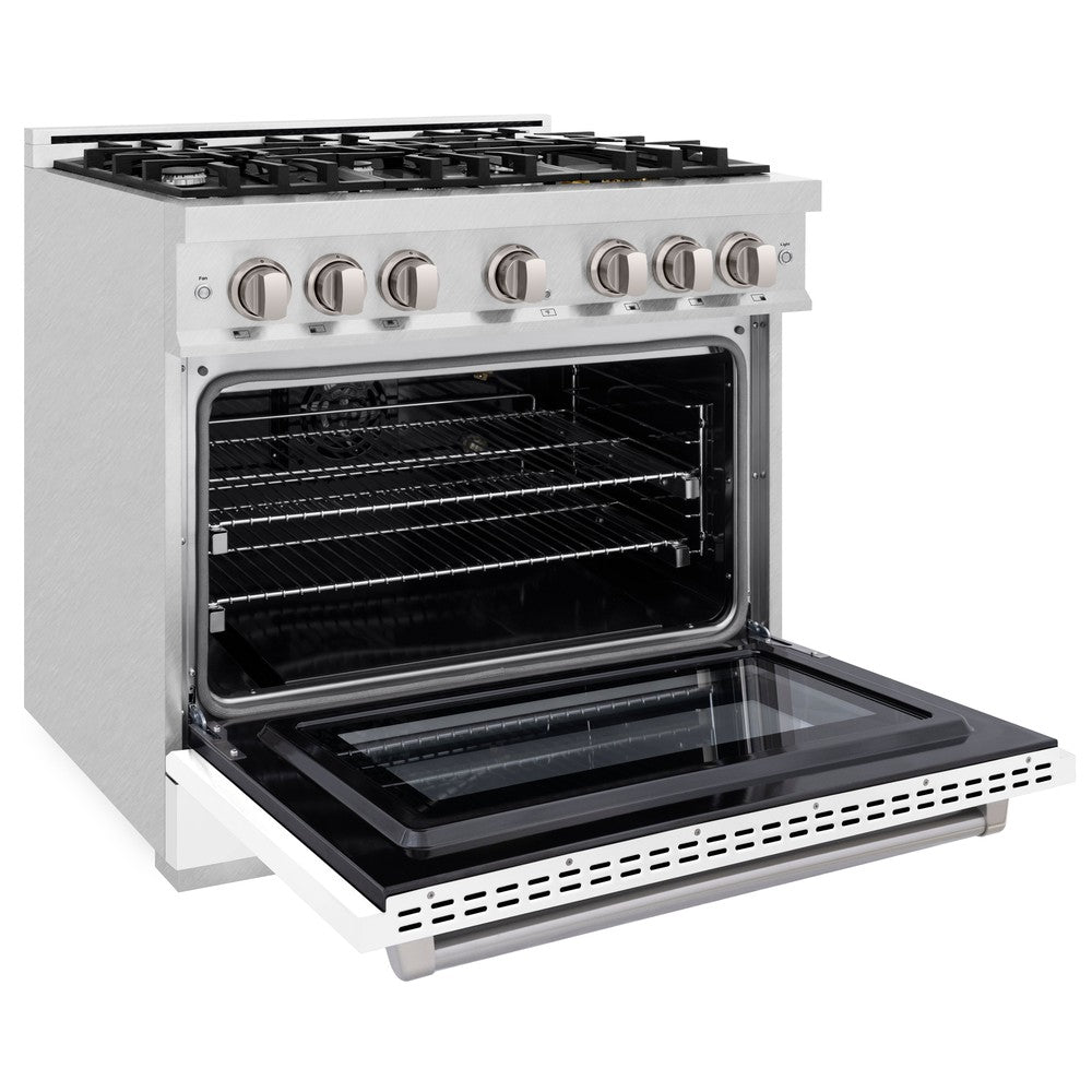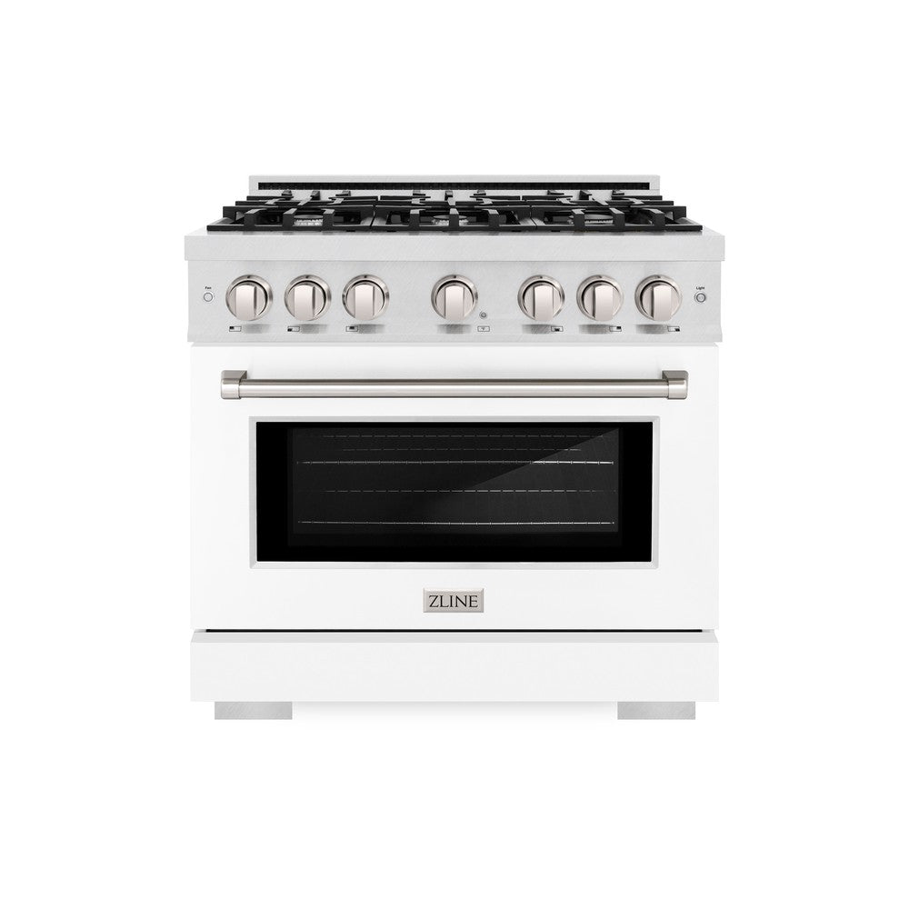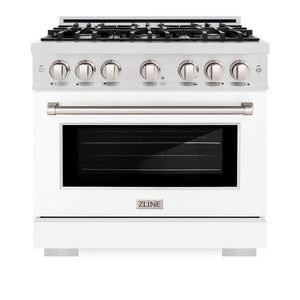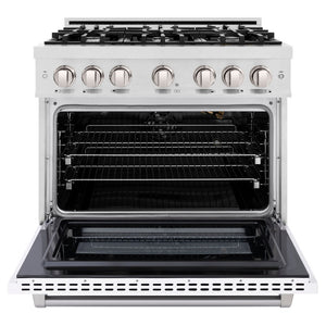 ZLINE 36 in. 5.2 cu. ft. Select Gas Range with 6 Burner Cooktop and Convection Gas Oven in Satin Stainless Steel with White Matte Door (HGRS-WM-36)