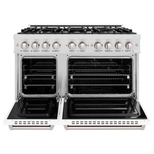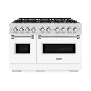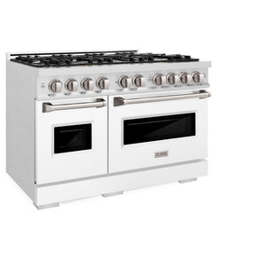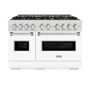 ZLINE 48 in. 6.7 cu. ft. Classic Double Oven Gas Range with 8 Burner Cooktop in Satin Stainless Steel with White Matte Doors (CGRS-WM-48)