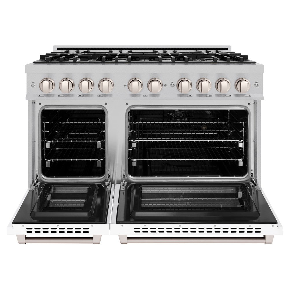 ZLINE 48 in. 6.7 cu. ft. Select Double Oven Dual Fuel Range with 8 Burner Gas Cooktop in Satin Stainless Steel with White Matte Doors (HDRS-WM-48)