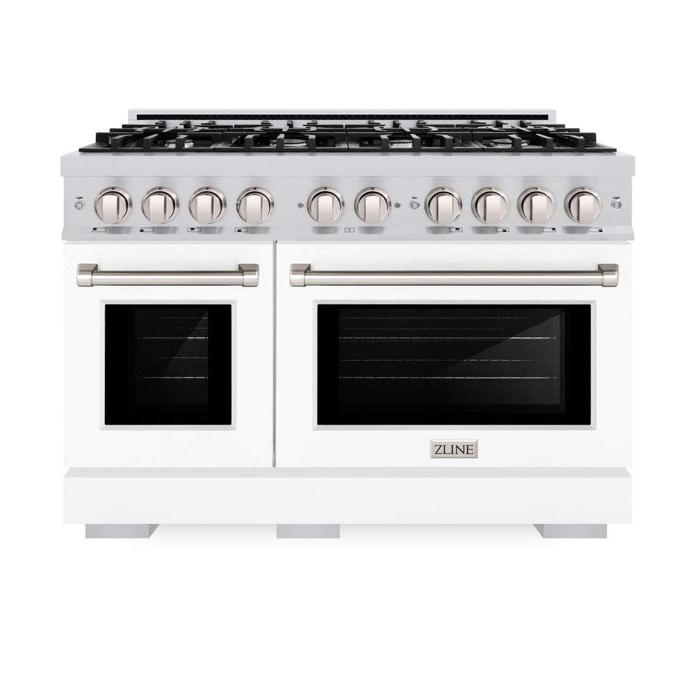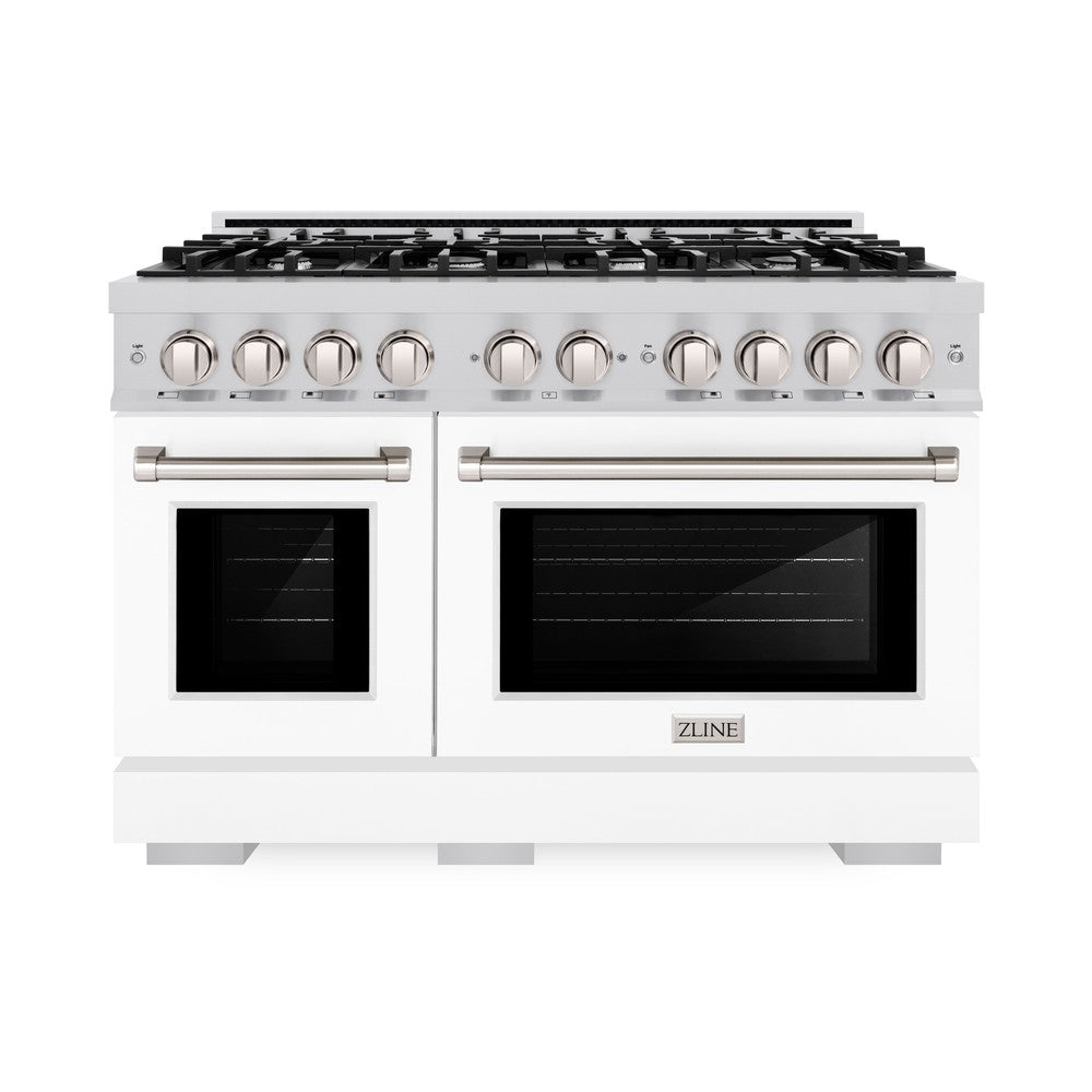 ZLINE 48 in. 6.7 cu. ft. Select Double Oven Dual Fuel Range with 8 Burner Gas Cooktop in Stainless Steel with White Matte Doors (HDR-WM-48)