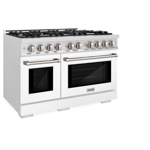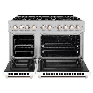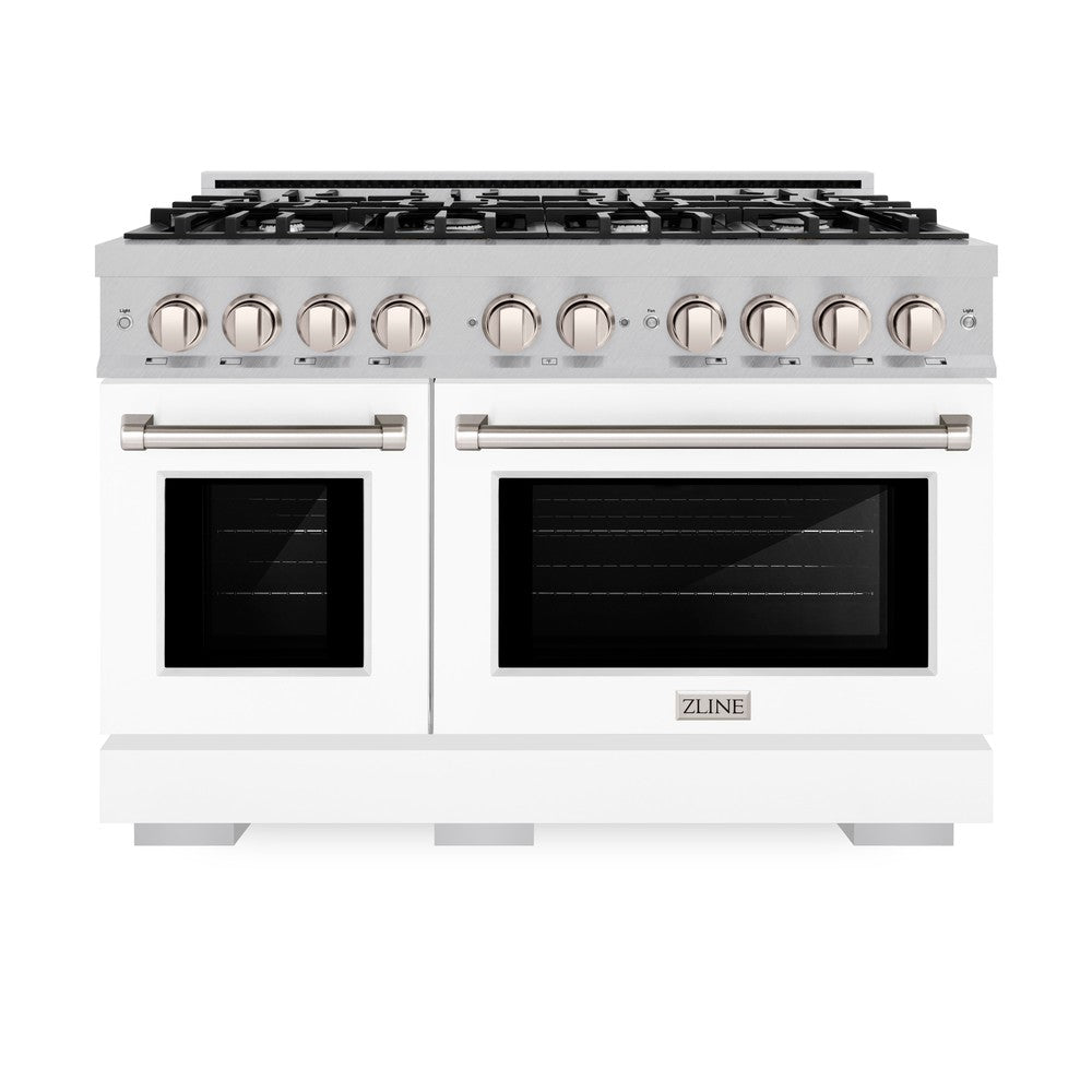 ZLINE 48 in. 6.7 cu. ft. Select Double Oven Gas Range with 8 Burner Cooktop in Satin Stainless Steel with White Matte Doors (HGRS-WM-48)
