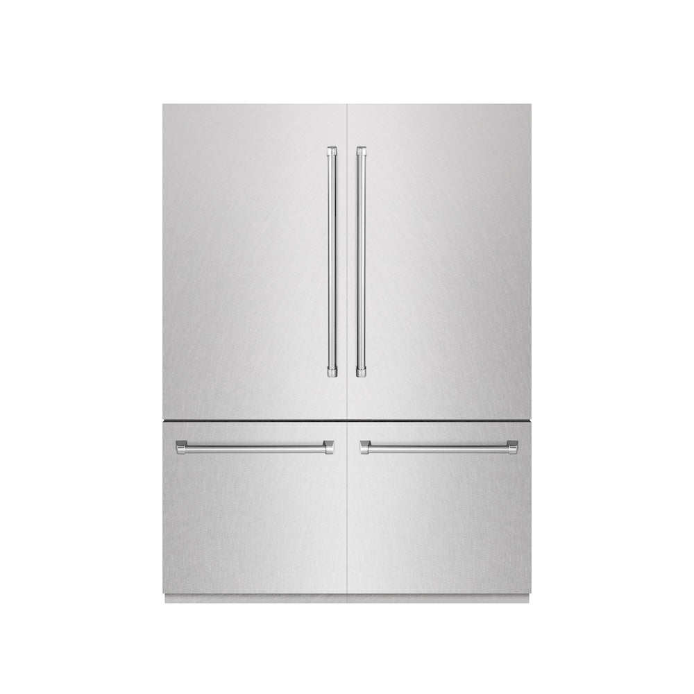 ZLINE 60 in. 32.2 cu. ft. French Door Built-In Bottom Freezer Refrigerator with Water Dispensers and Ice Makers in Satin Stainless Steel with Graphite Gray Interior (GRBIV-SN-60)
