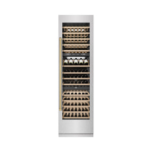 Luxury isn’t meant to be left desired—it’s meant to be attainable. The ZLINE Autograph Edition 24 in. 12.4 cu. ft. Triple Zone 100 Bottle Column Wine Cooler in Satin Stainless Steel and Champagne Bronze Accents (RCWVZ-SN-24-CB) combines the convenience of a sleek integrated tall column built-in design with triple zone temperature control and spacious storage capacity for up to 100 wine bottles. Achieve ZLINE Attainable Luxury® excellence with innovative features that showcase your collection in unparalleled style and ensure that every pour is perfection.