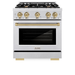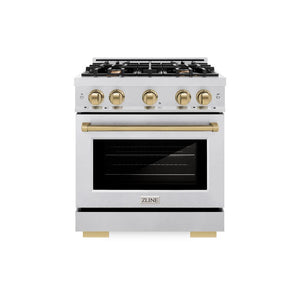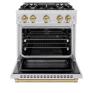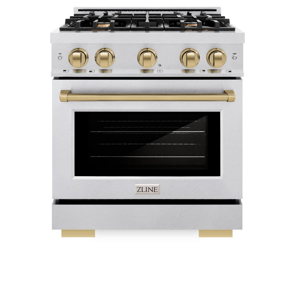 ZLINE Autograph Edition 30 in. 4.2 cu. ft. Select Gas Range with 4 Burner Cooktop and Convection Gas Oven in Satin Stainless Steel and Champagne Bronze Accents (HGRSZ-30-CB)
