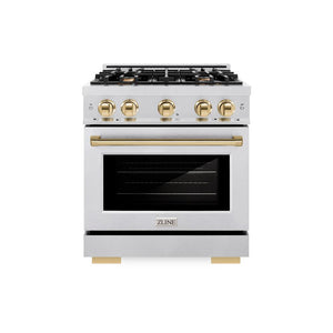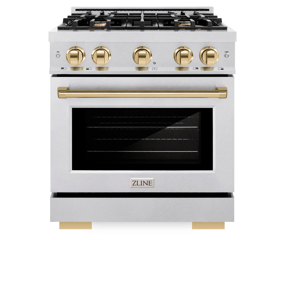 ZLINE Autograph Edition 30 in. 4.2 cu. ft. Select Gas Range with 4 Burner Cooktop and Convection Gas Oven in Satin Stainless Steel and Polished Gold Accents (HGRSZ-30-G)