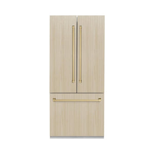 ZLINE Autograph Edition 36 in. 19.6 cu. ft. Panel Ready French Door Built-In Bottom Freezer Refrigerator with Water Dispenser and Ice Maker with Champagne Bronze Accents (RBIVZ-36-CB)