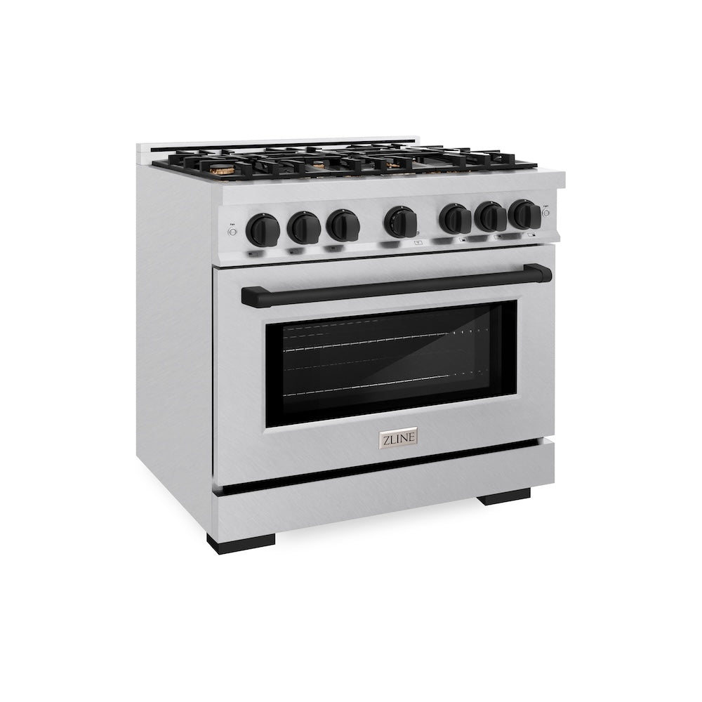 ZLINE Autograph Edition 36 in. 5.2 cu. ft. Select Gas Range with 6 Burner Cooktop and Convection Gas Oven in Satin Stainless Steel and Matte Black Accents (HGRSZ-36-MB)