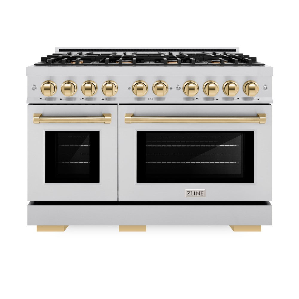 ZLINE Autograph Edition 48 in. 6.7 cu. ft. Select Double Oven Gas Range with 8 Burner Cooktop in Stainless Steel and Polished Gold Accents (HGRZ-48-G)